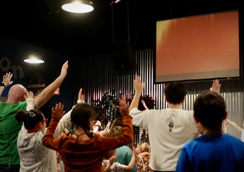 The kids have their own worship, Bible story, time spent learning